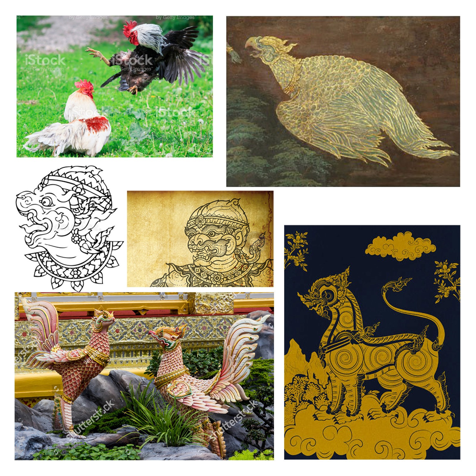 Rooster is one of the creatures of the Himmapan Forest, from the Thai Mithology. Being a very dynamic animal, it’s also a great design element.